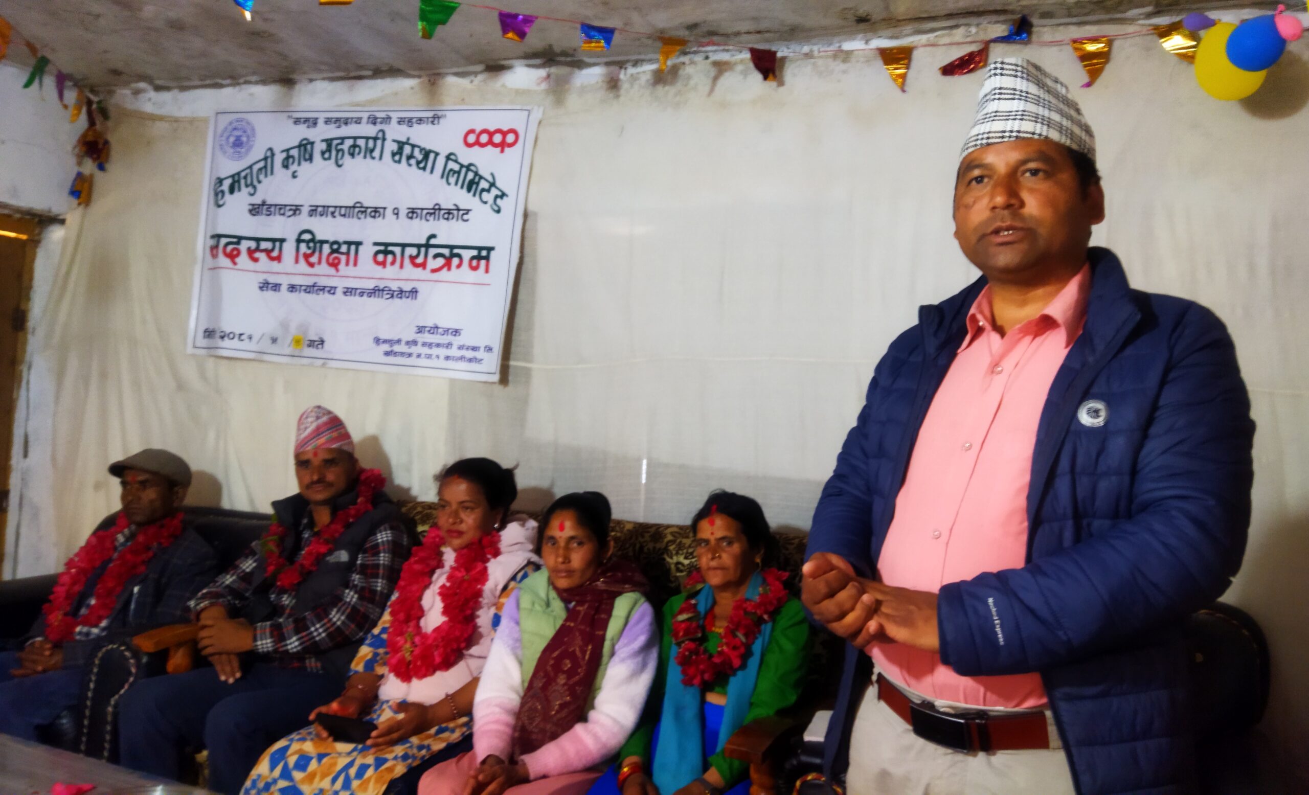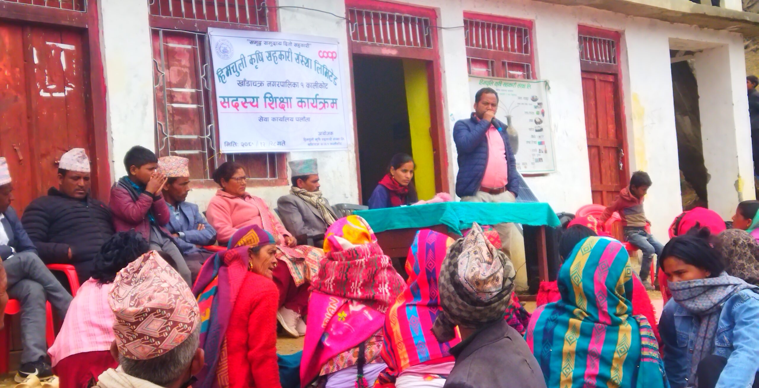कालीकोट जिल्लामा रहेको हिमचुली कृषि सहकारी संस्थाले फागुन र चैत्र महिनामा गरेर जिल्लाका ९ वटै स्थानिय तहमा रहेका ११ वटा सेवा कार्यालयहरुमा पुगेर सदस्य शिक्षा कार्यक्रम गरेको संस्थाका मुख्य व्यवस्थापक जगेन्द्र प्रसाद आचार्यले बताए । उनका अनुसार संस्थाका कुल सदस्य १५ हजार चार सय ३० जना रहेकोमा यस वर्ष ६ हजार ६ सय ४१ जना सदस्यहरुमा सदस्य शिक्षा कार्यक्रम सम्पन्न गरेको बताइएको छ ।