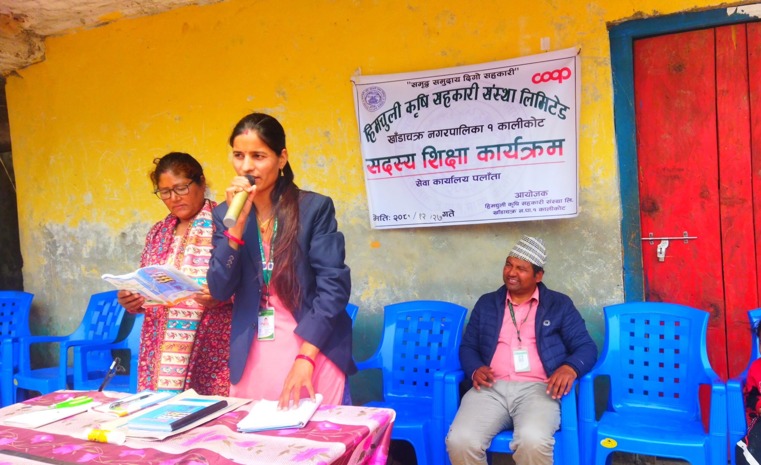 कालीकोट । यस वर्ष हिमचुली सहकारी संस्था लि.ले आफ्ना सदस्यहरुमा सदस्य शिक्षा व्यापक बनाएको छ । सहकारी संस्थाले जिल्लाका ८२ वडा मध्ये ८१ वडा स्तरमा पुगेर सदस्य शिक्षा तथा भेटघाट कार्यक्रम गरेको छ ।
