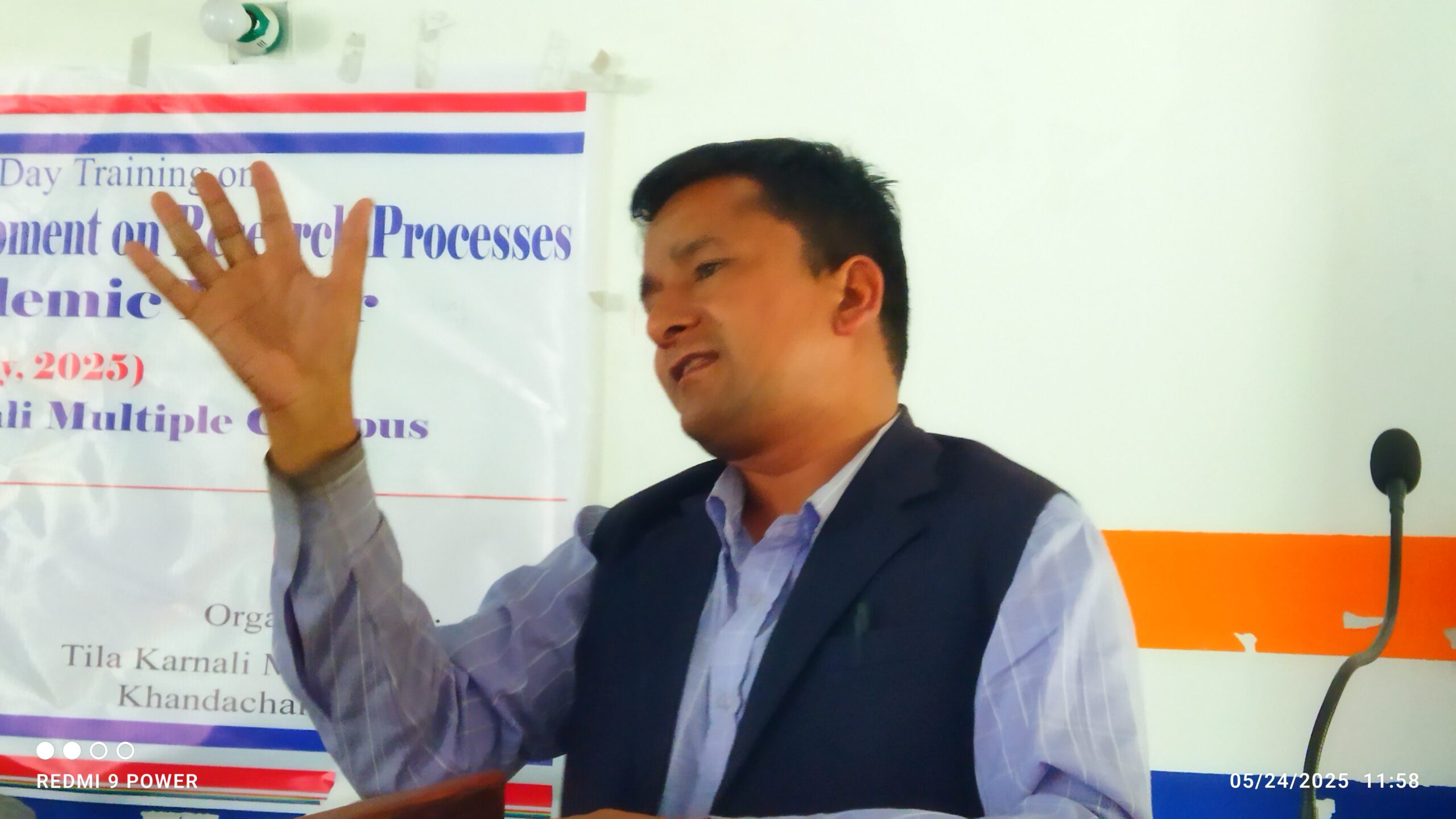 तिला कर्नाली बहुमुखि क्याम्पसले शुरु गरेको थेसिस लेखन , अनुसन्धान  र क्षमता विकास तालिममा तिल कर्नाली बहुमुखि क्याम्पस प्रमुख रुद्र सापकोटाले विद्यार्थीको क्षमता अभिवृद्धिका लागि यस्ता कार्यक्रम जारी राख्ने बताएका छन । विश्व विद्यालय अनुदान आयोगको सहयोगमा गरिएको तालिम शुक्रवार शुरु भइ सोमबर सम्म संचालन हुने क्याम्पसका विभागिय प्रमुख दिपक थापाले बताएका छन्।