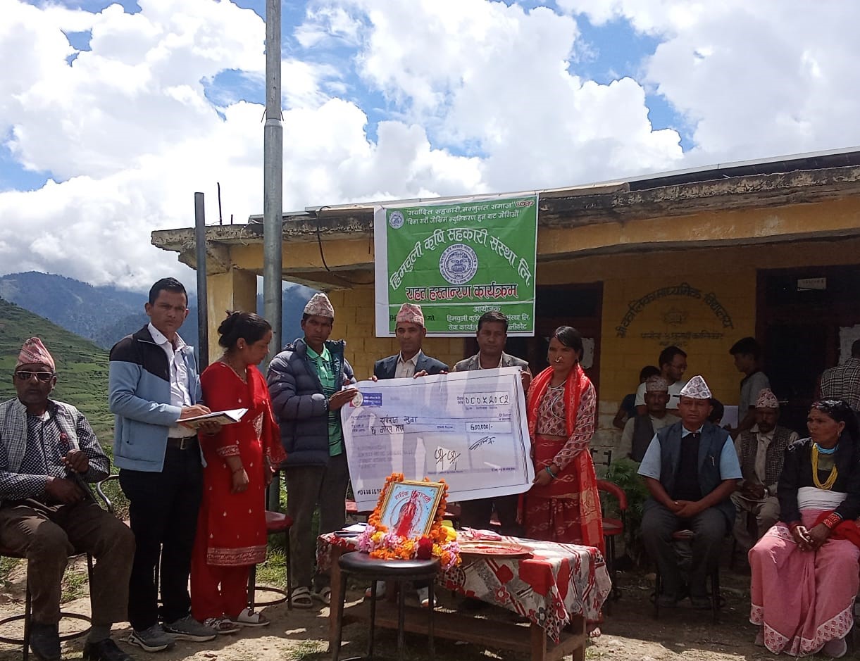 हिमचुली कृषि सहकारी संस्था लि.की शेयर सदस्य भई बचत तथा ऋणको कारोबारमा सक्रियता जनाउदै आएकी सदु बुढाको गएको बैशाख ७ गते ट्याक्टर दुर्घटनामा परि निधन भएको थियो । स्वर्गिय सदु बुढाले सहकारीबाट रु.२ लाख कर्जा लिएकोमा रु.२ लाख कर्जा मिनाह गरिएको र थप राहत वापत रु २ लाख सहित सदस्य दुर्घटनाबाट रु.२ लाख गरी जम्मा छ लाख राहत हस्तान्तरण गरिएको सहकारीका पलांता सेवा कार्यालय व्यवस्थापक सरिता न्यौपानेले बताइन । उनका अनुसार कालिका मावि छलाँहमा पलांता गाउँ पालिका अध्यक्ष विष्णु बहादुर रोकाया सहित स्थानियको सहभागितामा उक्त राहत हस्तान्तरण गरिएको हो । सहकारीका तर्फाबाट संचालक सर्जन बुढा, आलेप मनिका बोहरा, व्यवसाय व्यवस्थापक शन्तोष भण्डारी सहित शेयर सदस्यहरुको सहभागितामा उक्त राहत हस्तान्तरण गरिएको हो ।
