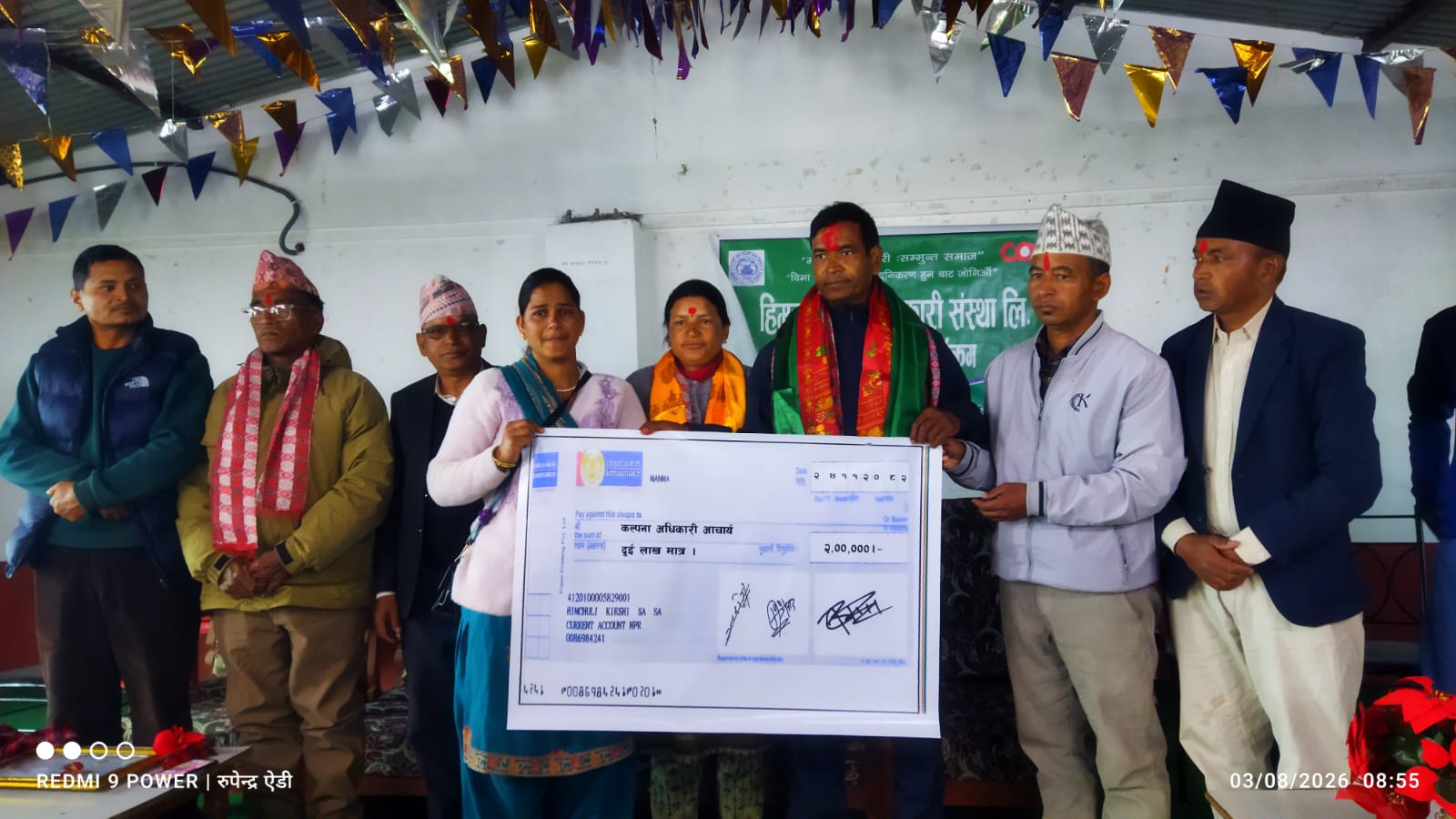 राहत हस्तान्तरण कार्यक्रममा सहकारीका निवर्तमान अध्यक्ष कालि बहादुर महतारा, वर्तमान सचिव धनलाल अधिकारी सहितले कार्यकाल सफलताको शुभकामना व्यक्त गरेका छन ।